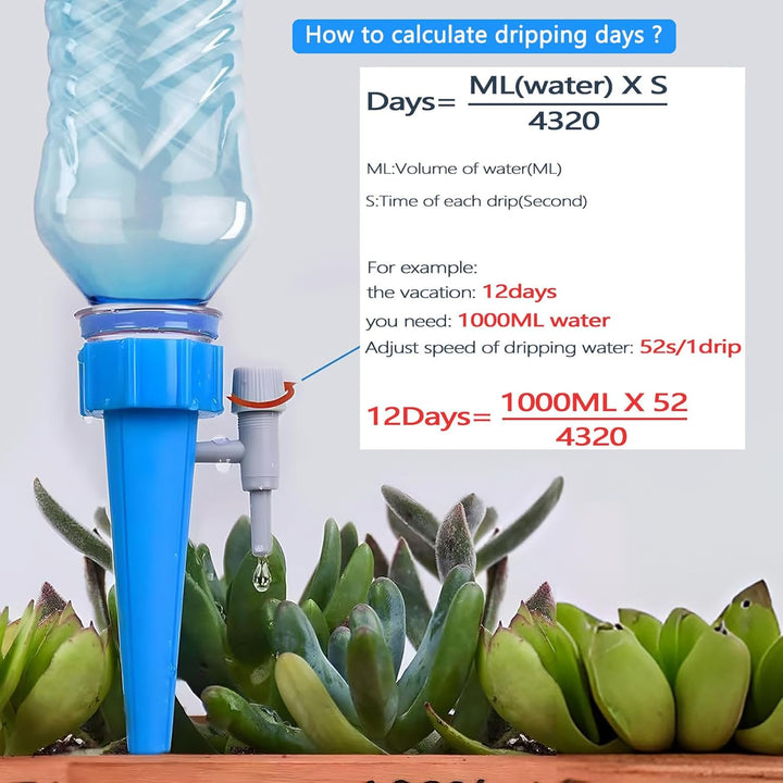 Dial the built-in valve from 0â60 sec/drip to match any plantâs thirst. One 1 L bottle lasts up to two weeks.