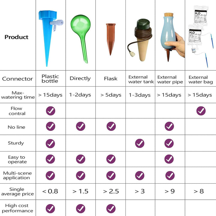 | Watering Duration | â1-15 days per 0.5-2 L bottle |