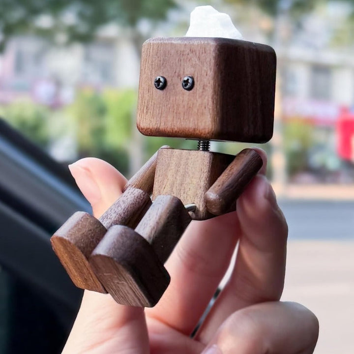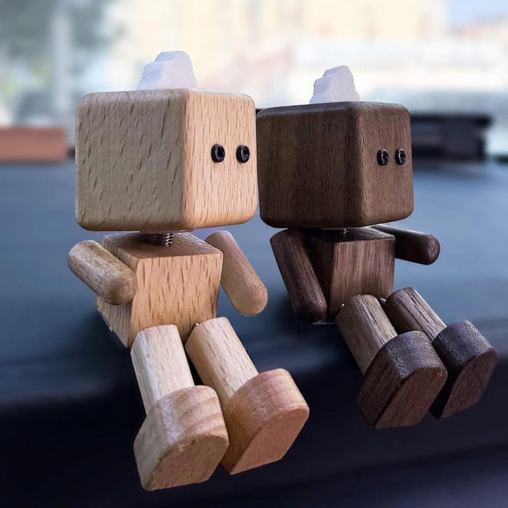Shaking Wooden Robot Car Air Freshener – Aromatherapy Dashboard Decoration